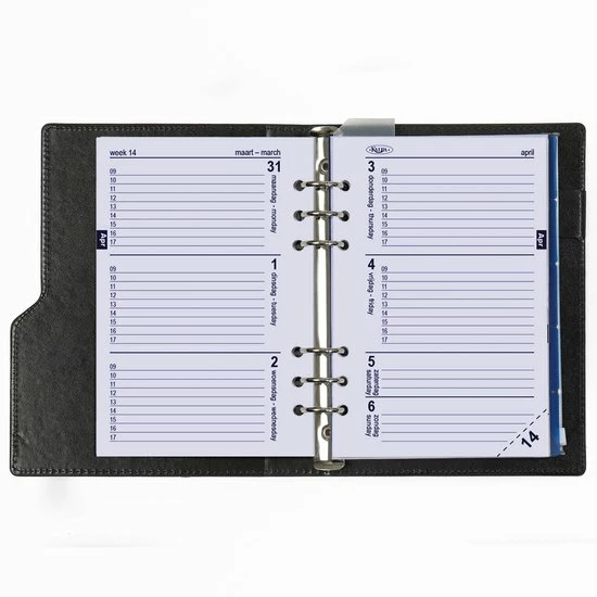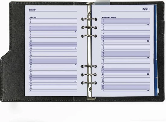 A5 maat hervulbare agenda met gratis meerjarige agendavulling met veel schrijfruimte. Met het stevige ringmechaniek is het gemakkelijk om de indeling van je agenda aan te passen aan jouw manier van werken. Je belangrijke aantekeningen kun je gewoon in je organizer laten, als je straks een nieuwe agenda-vulling toevoegt.