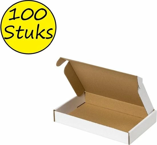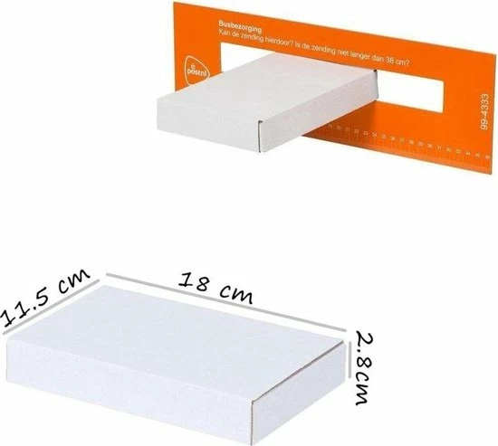 Post.nl gestandaardiseerde brievenbusdoosjes met een binnen maat van 180x115x28mm en een witte afwerking. Voor het versturen van brievenbus pakketten tegen een gunstiger tarief, Eenvoudig te vouwen en te sluiten met een vaste insteekklep.