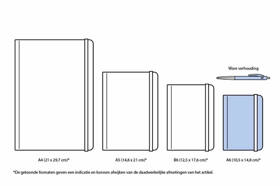 | Agendaformaat | A6, (10, 5, x, 14, 8, cm) |