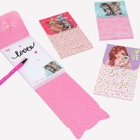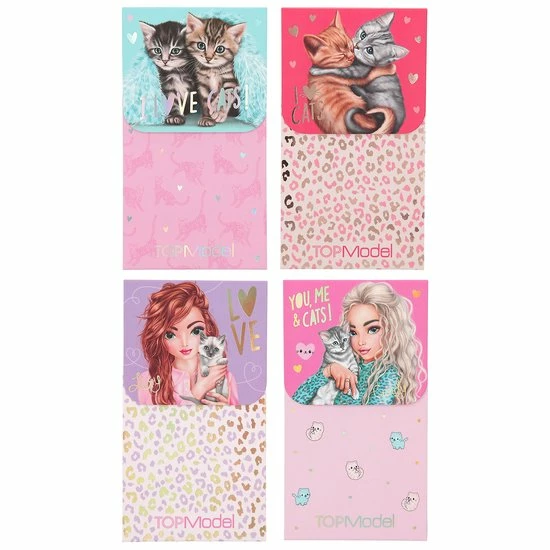Miauw, deze 4 notitieblokken zijn zo schattig: met leuke kattenmotieven en natuurlijk de TOPModels. Elk blok heeft 60 vrolijke pagina’s en een handige magneetsluiting.
