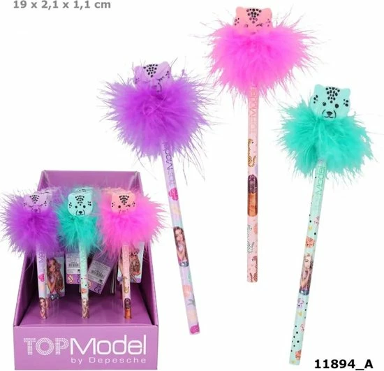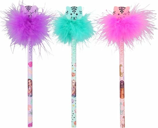 Een dierenprint is de grote trend. En de potloden uit de TOPModel serie Urban Jungle hebben echte opvallende topper van veren en een schattig luipaardenhoofdje dat een gum is. In paars, mint en roze, met coole jungle print en natuurlijk de TOPModels. Hardheid: HB.