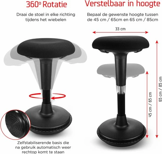 Zeg vaarwel tegen een bureaustoel en kies voor alle voordelen die de ergonomische wiebelkruk met zich meebrengt. Beweging en een goede zithouding zijn essentieel voor een gezond en sterk lichaam. De hele dag op een stoel zitten is dan ook zeker niet goed voor de gezondheid. Hier is nu de oplossing voor gevonden: de wiebelkruk. Ideaal om te gebruiken als ergonomische bureaukruk, thuis of op kantoor.