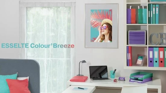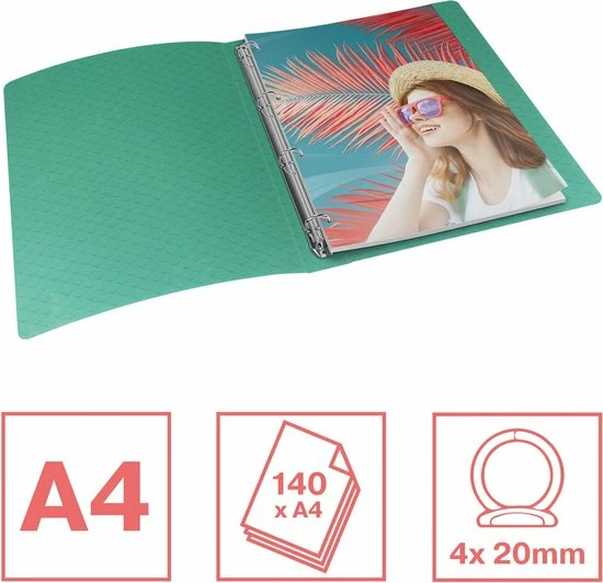 De Esselte Colour’Breeze PP A4 ringband met zachte kaft is duurzaam, lichtgewicht en ergonomisch ontworpen, zodat hij zowel onderweg als op kantoor, op een bureau of op een plank of in een kast, kan worden gebruikt. Deze decoratieve en veelzijdige doorzichtige ringband beschikt over een mechanisme met 4 ronde ringen, waardoor het eenvoudig is pagina’s om te slaan, of vellen toe te voegen aan of te verwijderen uit een document of project. De map is gemaakt van flexibel, eenvoudig schoon te maken polypropyleen, heeft capaciteit voor tot 140 vellen papier en heeft een rugbreedte van 25 millimeter, met een zelfklevend rugetiket om de inhoud duidelijk te identificeren en te personaliseren. De doorzichtige polypropyleen ringband is afgewerkt met het frisse en moderne Colour’Breeze reliëfpatroon, en is verkrijgbaar in een selectie van levendige kleuren. Omarm de heldere kleuren van de natuur om een positieve werkruimte te creëren met de Colour’Breeze Range van Esselte.