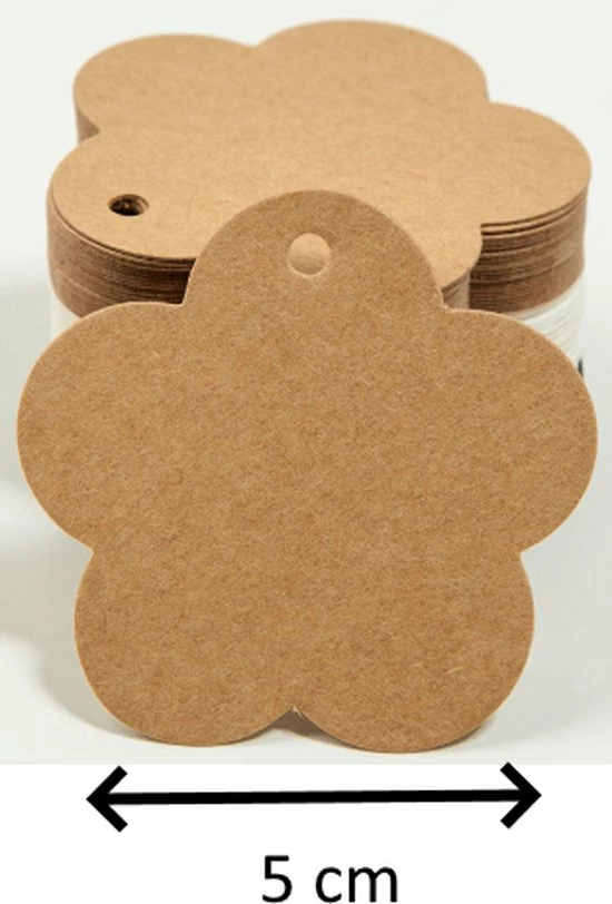50 Bloemvormige labels / etiketten om bijvoorbeeld een cadeau mee te versieren.