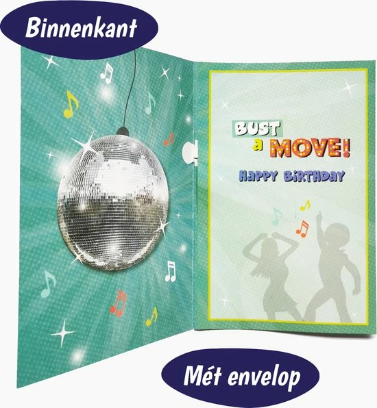 Deze Disco verjaardagskaart van Happy Happenings is zoals altijd van hoge kwaliteit en daarnaast inclusief een leuk deuntje. Zo wordt de jarige bij openen van de kaart verrast met een leuke discobeat. Met deze meer dan unieke kaart verras je daadwerkelijk iedereen!