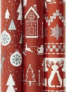 Enper Assortiment Rood Luxe Kerstpapier Inpakpapier Cadeaupapier – 200 X 70 Cm – 3 Rollen