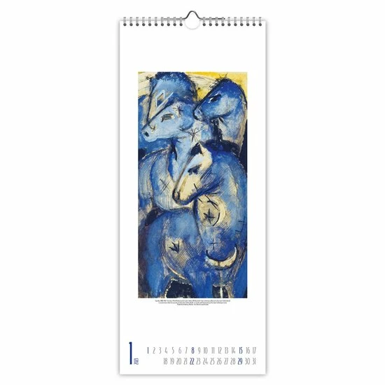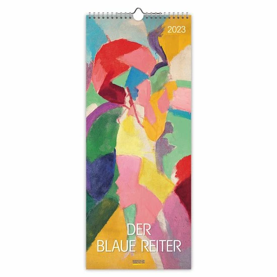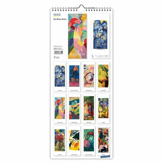 Der Blaue Reiter Kalender 2023.Elke maand een nieuwe afbeelding met de dagen van de maand. Formaat 28.5 x 69 cm.