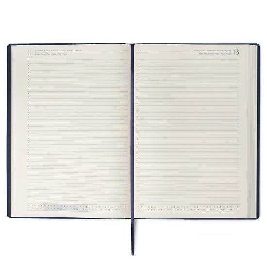 LEGAMI BUREAU AGENDA 2023, Dag op één pagina. Formaat: 21x30cm / A4, (1 januari 2023 t/m 31 januari 2024), PEFC duurzaam gefabriceerd papier, gelinieerde indeling per uur van 8:00 tot 22:00 uur, dag en weeknummers onderop elke pagina zichtbaar in maandoverzicht, ruim voldoende schijfruimte. Maandplanner t/m januari 2024, Internationale feestdagen, wereld tijdzones, Europese luchthavens, klimaat data, vakantieplanner. Zes talen waaronder Engels en Arabisch. Adrespagina’s, penlus, leeslint, elastieken sluiting, hardcover omslag, gestikt en gelijmde rug.
