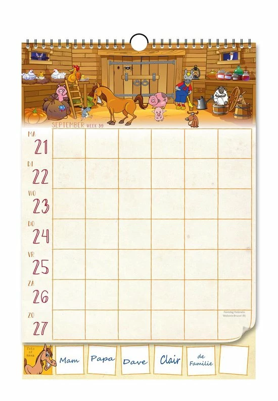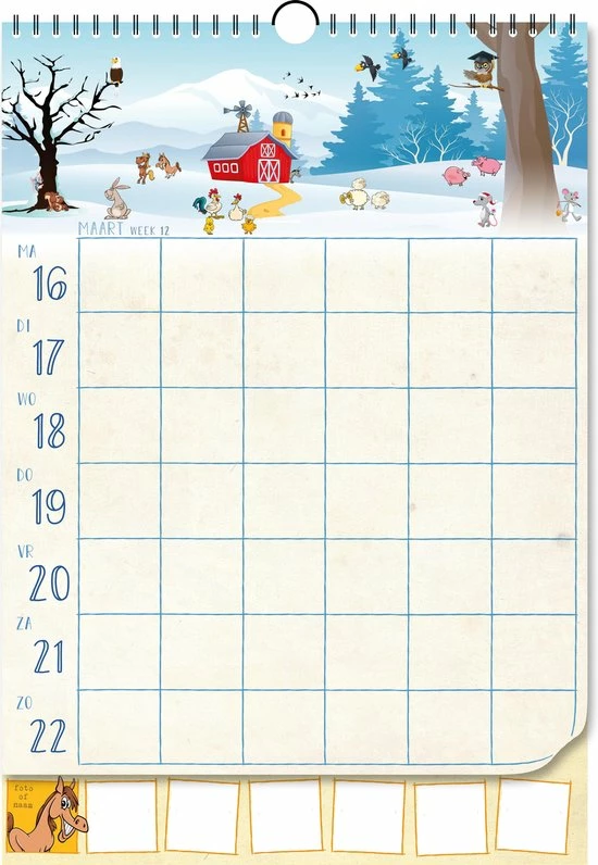 Als thema hebben wij voor de boerderij met zijn dieren gekozen in de 4 seizoenen, 4 vrolijke en kleurrijke voorstellingen maken deze planner compleet.