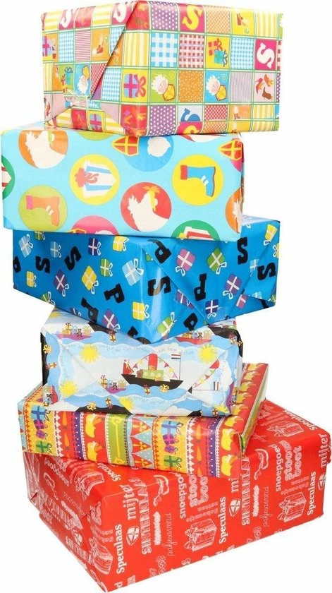 5x rollen Sinterklaas kadopapier voor het inpakken van cadeau’s voor tijdens de feestdagen! kadopapier/inpakpapier. Formaat inpakpapier: 46 x 250 cm.