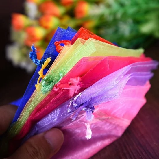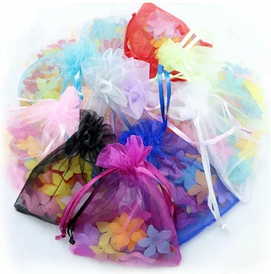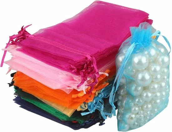 Hoge kwaliteit kleine (7x9cm) organza zakjes met trekkoordje in stijlvol kleurenassortiment. Leuk om te versieren en te vullen met kleine traktaties.