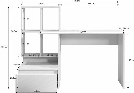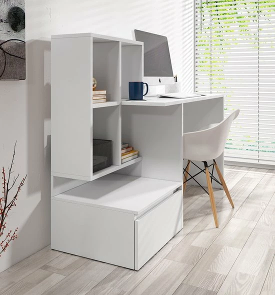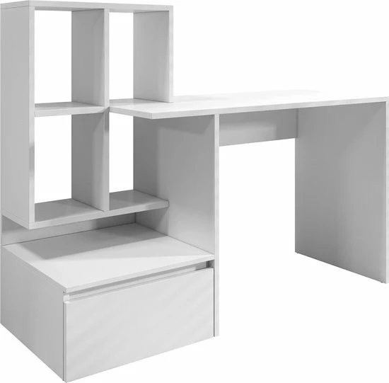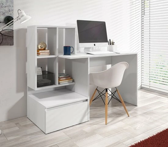 Het Pierre 2 bureau met opbergvakken is een zeer multifunctioneel bureau! De combinatie van een breed werkblad met open schappen is erg handig om alles binnen handbereik te houden, maar toch op te kunnen bergen. Het bureau beschikt over een bureaublad van 113,4 cm breed. Links van het bureau bevinden zich 4 open schappen met daaronder een handige opberglade.