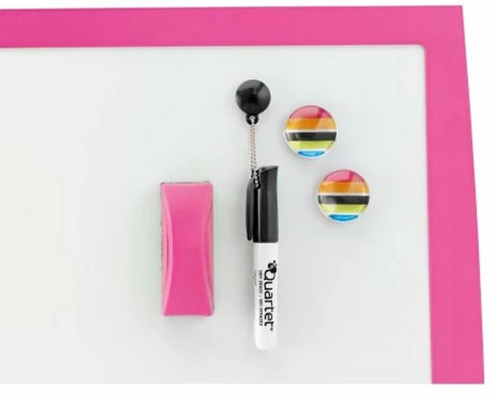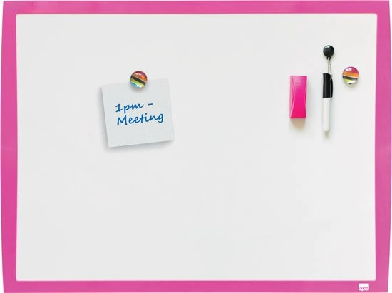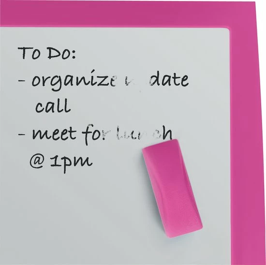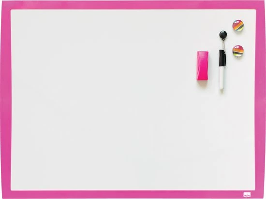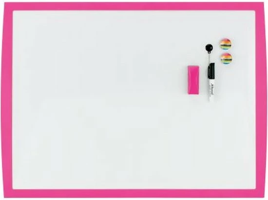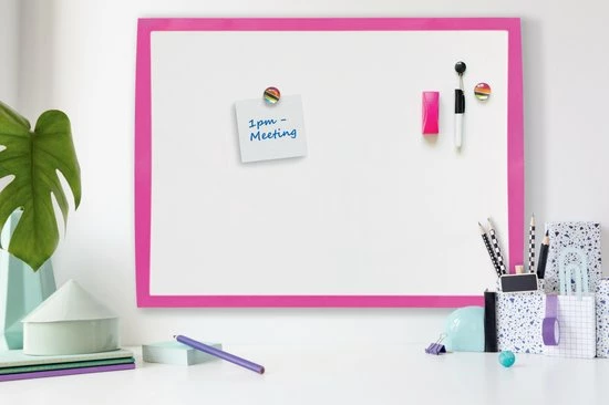 Dit kleine magnetische whiteboard met felroze frame is dankzij het hoogwaardige droog uitwisbare oppervlak de perfecte aanvulling op elk thuis(kantoor). Dit klassieke whiteboard met modern design heeft een stijlvol roze frame en is ideaal voor het hele gezin. Aan de muur te bevestigen in zowel horizontale als verticale positie dankzij de meegeleverde montageset. Ideaal als magnetisch memobord voor het maken van planningen en opschrijven van herinneringen, roosters of ideeën. Dit handige whiteboard is ook ideaal voor in de slaapkamer, speelruimtes, de studeerkamer of keuken en voegt een vleugje kleur toe.