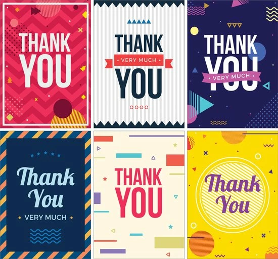 Unieke set bedankkaarten, iedere bedankkaart heeft een uniek en eigen ontwerp. De set bevat totaal 12 bedankkaarten
