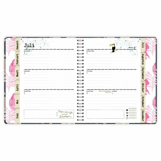 De Weekly planner van Studio Onszelf is een stijlvol vormgegeven en luxe weekplanner met veel ruimte voor eigen invulling. De planner bevat alle Nederlandse en Belgische feestdagen en vakanties en iedere maand begint met een handig tabblad. Door een verborgen ringband blijft de planner bovendien makkelijk openliggen. Ook biedt deze planner veel notitieruimte en andere leuke lijstjes, boodschappenlijstjes, een verjaardagskalender, bullet journaling pagina’s en nog veel meer. De planner is verder uitgerust met een opbergvak achterin, een leeslint en elastieken sluiting, wat deze planner tot een zeer compleet geheel maakt.