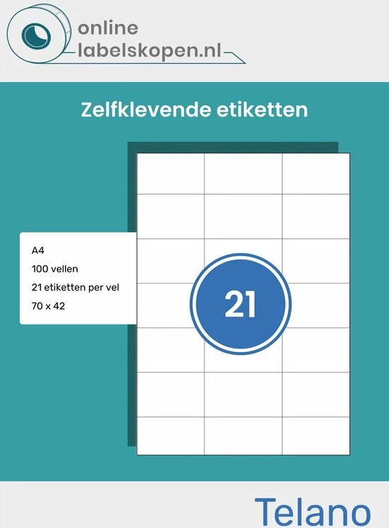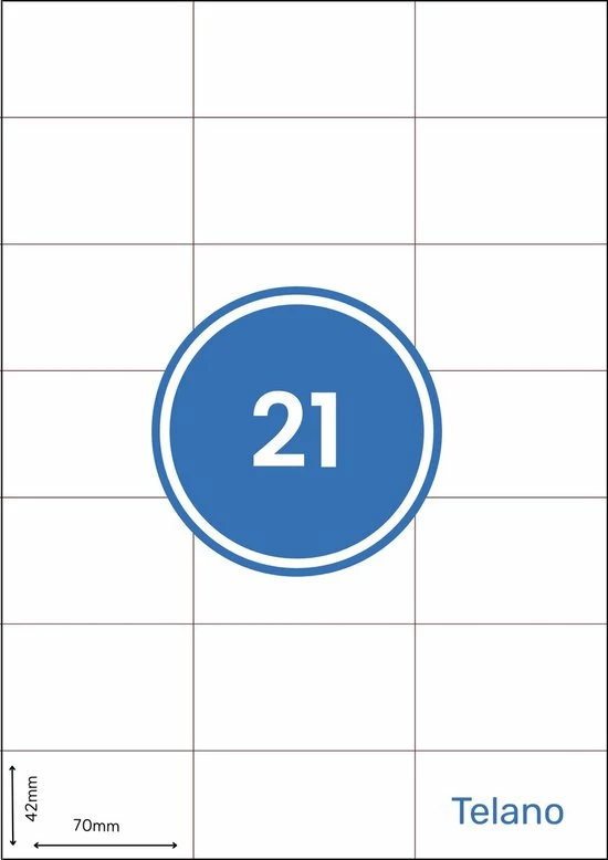 De Telano zelfklevende etiketten hebben een formaat van 70 x 42 mm en zijn geschikt voor alle soorten inkjet-, laserprinters en kopieermachines.