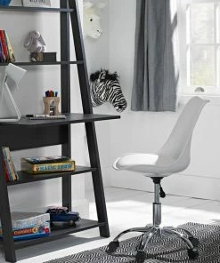 Het bureau biedt voldoende ruimte om te werken dankzij het brede, kantelbare tafelblad. Aan de zijkant staat een kast met drie lades om spullen in op te bergen. Daarnaast is er nog een extra opslagruimte onder het tafelblad. De kruk is bij de prijs inbegrepen.